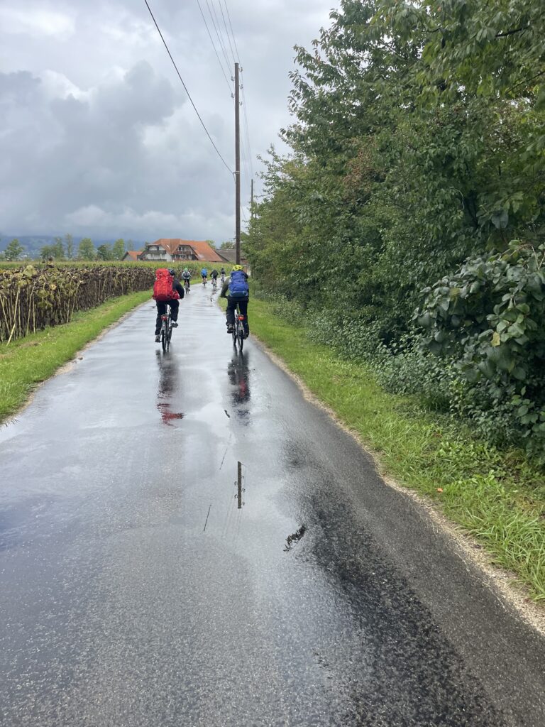 Am Dienstag, 02.September 2025, fuhren wir mit dem Zug nach Biel/Bienne. In Biel angekommen, bekamen wir unsere Mietvelos. Gleichzeitig begann es in Strömen zu regnen.