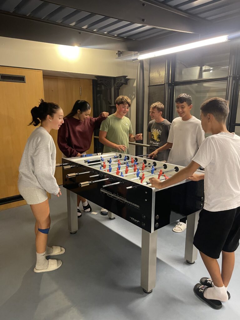Nachdem wir alle ein passendes Velo gefunden hatten, ging unsere Velotour los. Wir fuhren entlang der Aare, bis wir unseren ersten Rastplatz erreichten. Glücklicherweise ohne grössere Zwischenfälle. Nur ein blutendes Knie, aber das konnte behandelt werden. Einerseits erschöpft und andererseits voller Freude, haben wir unser Ziel erreicht, die Jugendherberge Solothurn. Die Stimmung: eine Mischung aus Stolz, Erschöpfung und Erleichterung. Sobald wir in unsere Zimmer eingeteilt worden waren, hatten wir ein bisschen Zeit, uns auszuruhen. Schliesslich war es schon Zeit zum Abendessen. Couscous mit Randenfalafel war das Menü. Tapfer haben wir das Essen gegessen, leider kam aber schon bald danach erneut ein kleiner Hunger auf. Da hat uns unsere Klassenlehrerin sogar erlaubt, noch etwas im Coop kaufen zu gehen.